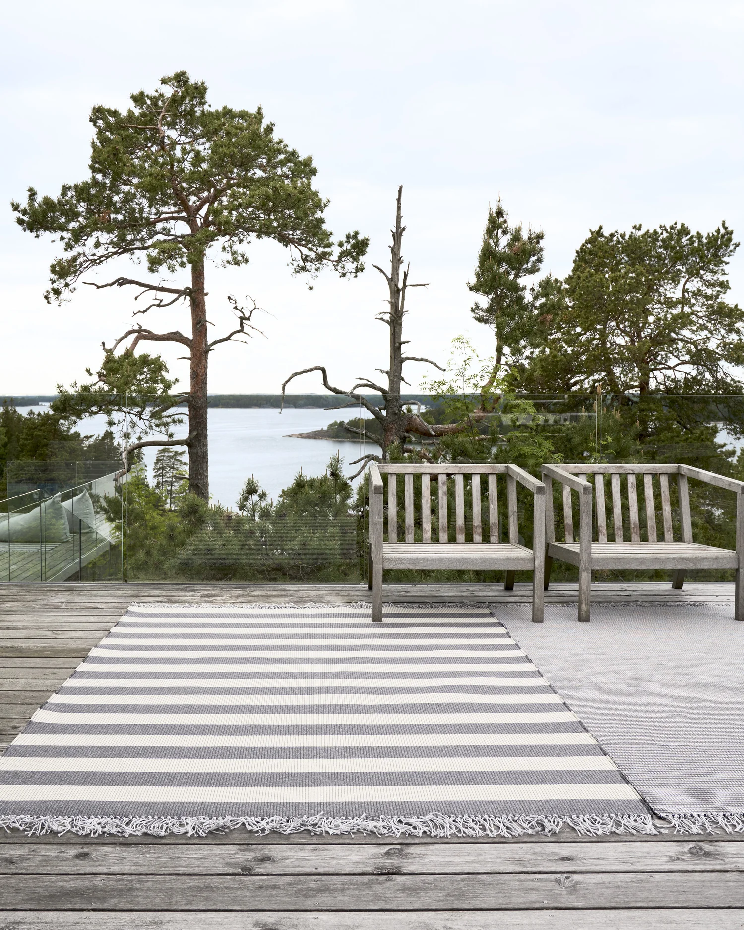 Big Stripe-maton 10 cm raidat tuovat yksinkertaista, mutta geometrista rytmiä moderniin sisustukseen. Woodnotes in/out-matot sopivat kaikkiin kosteisiin olosuhteisiin sekä sisäkäyttöön. Kosteuden kestävä materiaali mahdollistaa maton käytön erityisesti ulkotiloissa esim. terasseilla, parvekkeilla ja uima-allasalueilla. Woodnotesin in/oiut-maton tuntu on pehmeä ja siksi se on ihanteellinen vapaa-ajan käyttöön. Kosteuden kestävyyden lisäksi matolla on värien korkea auringonvalon kestävyys ja matto kestää sekä meriveden suolaisuuden että uima-altaan kloorin. Malliston värit ovat neutraaleja. Ominaisuuksiensa vuoksi Woodnotesin in/out-matot sopivat hyvin myös sisätilakäyttöön esim. keittiöön, eteiseen, kylpyhuoneen ja saunan pukeutumistiloihin. Tiukkaan kudotun maton pinnan ja materiaalivalinnan ansiosta Woodnotesin in/out matto sopii pölyallergikoille.