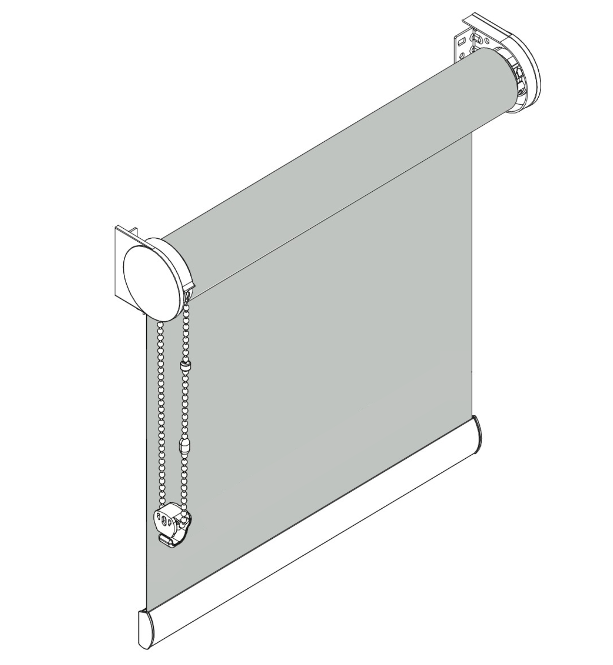 Pimentävä rullaverho Premium on erittäin kevyt ja hiljainen käyttää. Verhoa säädetään muovisella kuulaketjulla, jonka väri määräytyy valitsemasi mekanismin värin mukaan: valkoinen, harmaa tai musta. Voit erikseen valita myös metalliketjun.
