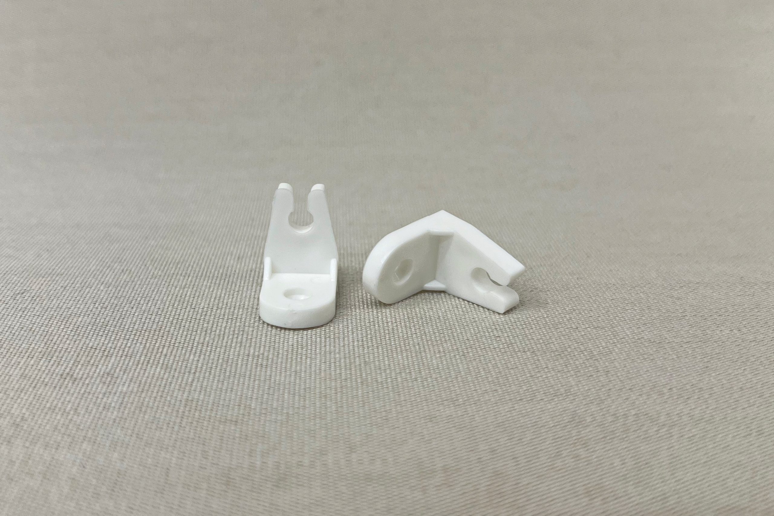 Sälekaihtimen säätötangon pidike. Pakkauksessa 3 pidikettä ja ruuvit kiinnittämiseen. Valittavissa valkoisena ja ruskeana.